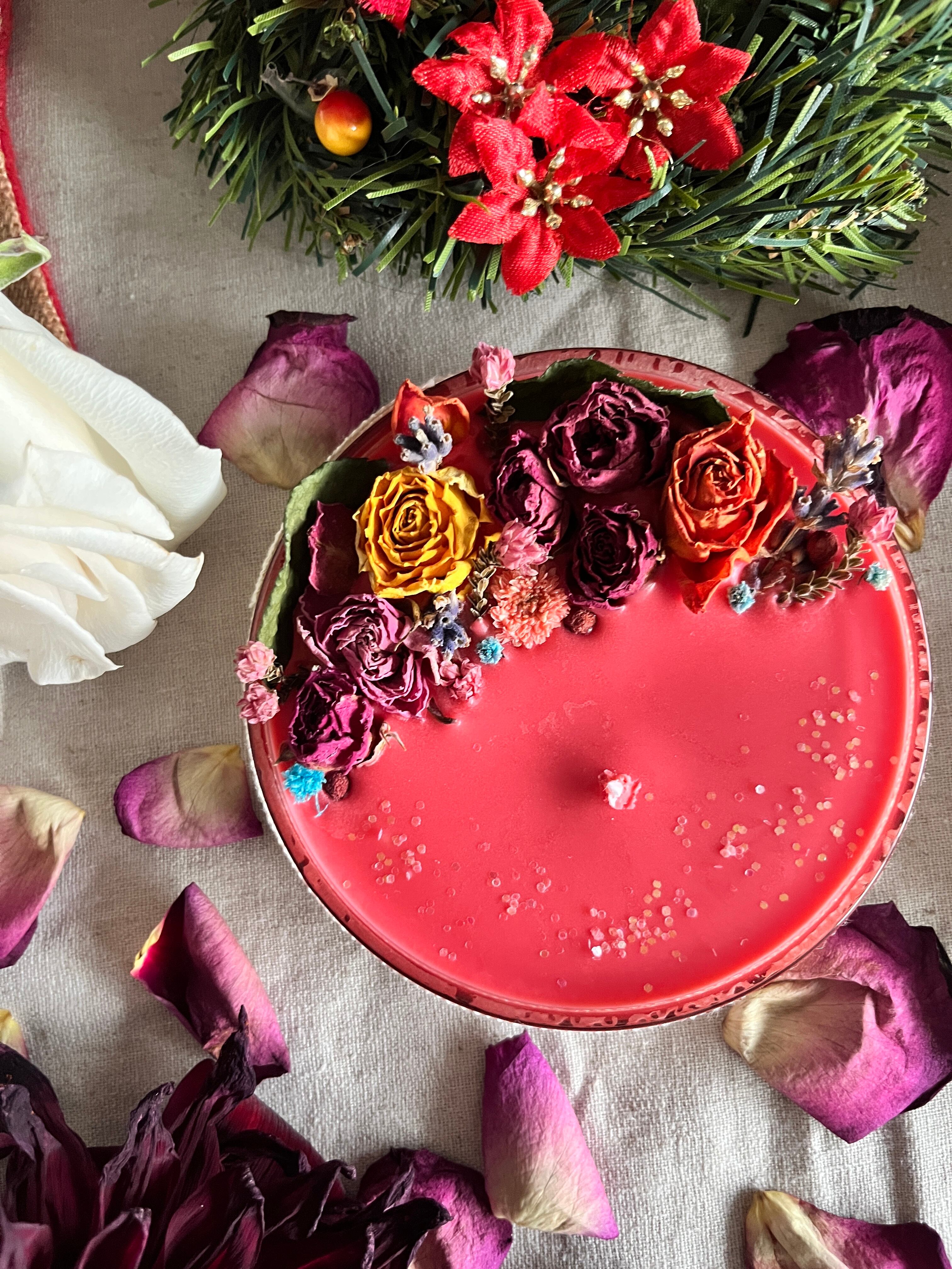 自家製ドライフラワーソイキャンドル。